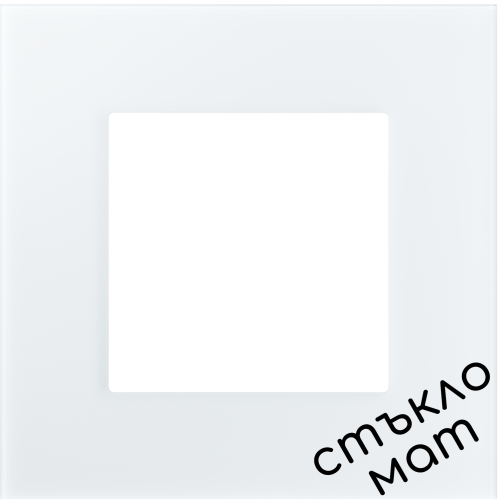 Стъклена рамка единична , комплект с монтажна метална основа 86*86mm- БЯЛА-МАТ