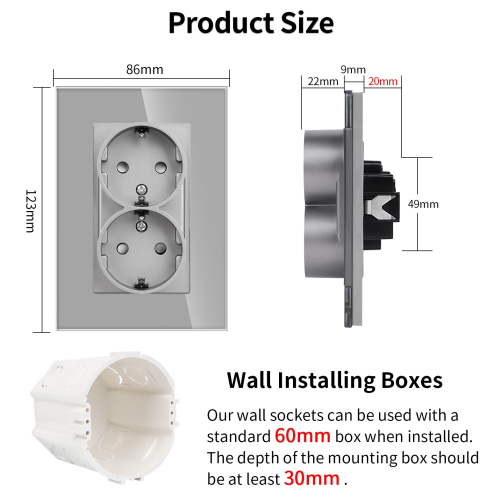 • Двоен контакт в комлект с кристална рамка 86мм*123мм, LUX-ON, за монтаж в единична конзола