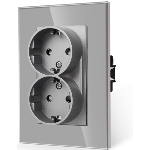 Двоен контакт-комплект за монтаж в единична конзола-СИВ