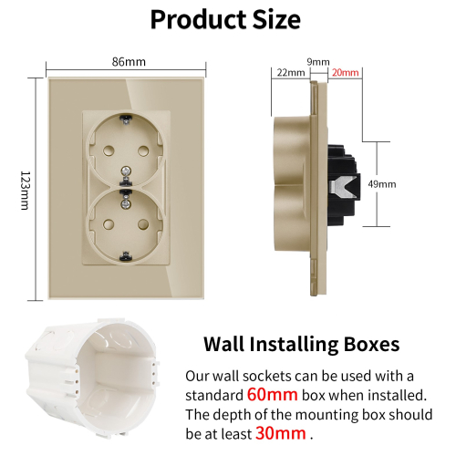 - Product Model: Двоен контакт-комплект за монтаж в единична конзола-ЗЛАТЕН